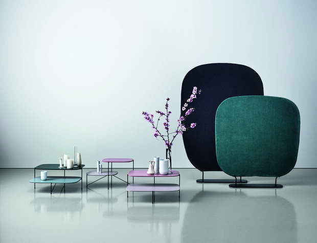 Shade is a filter, a screen, a compact system created by constructing spaces, decorating, separating, reserving private and intimate corners. The two sizes and the different finishes allow highly distinctive spaces to be created, with a choice of different fabrics perfectly coordinated with the upholstery and accessories.