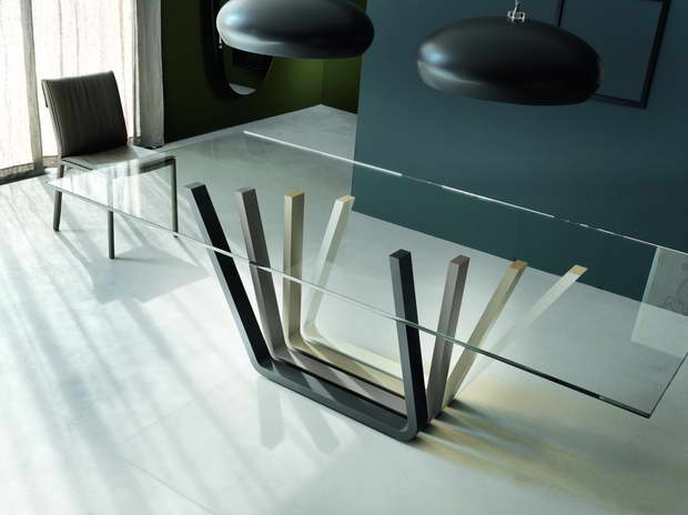 Recent trends in home furnishing make the dining table a very creative element in space. Its static nature is negated by a dynamic setup and shape of the legs, play of colors and materials, as well as multifunctionality. Trends dictate combining different chairs around the table, whether it be difference in color or design. However, when combining in this way you should choose a table with a more unobtrusive form or made with a maximum of two different materials, so as not to make the composition too aggressive.