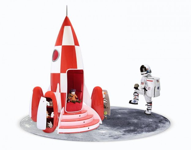 Ther other noveltie was Gold Box a toy box. All parents know that extra stor-age space in their kids rooms is always useful, and that’s why Circu created the Gold Box. Circu designed this box that your kid can use to hide their most precious goods. With a secret compartment and a rotating cover, this is the ideal box for your kids! The exterior finish is made in gold chrome plated, and the inside finish is blue flocking. Mermaid Bed and Moon Chair were the other two surprises for this trade show. Little mermaid bed was designed by Circu, and it’s a shell shaped bed. Shells are meant to protect little pearls, to protect them from the mother nature. This princess bed will also protect your little girl, and help her to dream and become a under sea princess. This piece is made in fiberglass, nacre painted. Inside, it contains lighting.