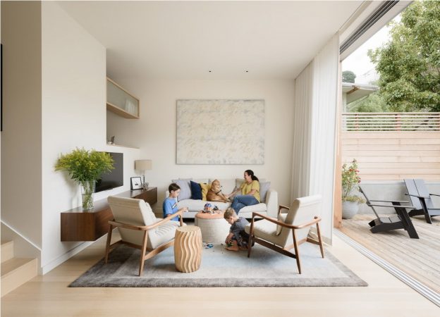 Fitty Wun is the California home of a couple with three children, designed to underpin a lifestyle encapsulated by the motto “work hard, play hard” and it achieves this to the full. The entire ground floor of the house, completely renovated by the practice Feldman Architecture, is a single space, the beating heart of the home, laid out like a hub in which cooking, eating, work, entertaining and – why not – playing take place. The large kitchen takes centre stage, serving also as an atrium onto which the upper floors look, with a swing hung from the ceiling, symbolising the relaxed and laid-back spirit of its owners.