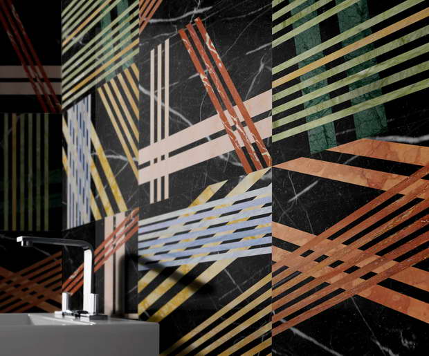 Die Zeichnungen, die farblichen Abstufungen und die Herstellungsmethode dieser neuen Produktlinie bestehend aus Fussböden und Wandverkleidungen brechen mit dem klassischen Bild der Marmorintarsien und deren Verwendung für dekorative Zwecke, und eröffnen neue, innovative Wege. Die Kollektion präsentiert sich in einer breiten Palette unterschiedlicher Farbtöne – von lebhaften bis hin zu zarten – und umfasst eine Serie an gebrauchsfertigen Modulen, die einerseits die hochwertige Qualität antiker Intarsien bewahren, andererseits durch ihr außergewöhnlich starkes Design eine völlig neue Sprache sprechen.