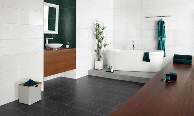 As floor tiles, the colours DEEP ANTHRACITE and MID-GREY of the series EMOTION are recommended, which harmonize with TAJO not only with regard to the formats (30 x 60 and 60 x 60 cm), but also the look.