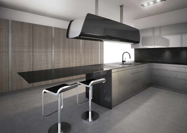 For the first time, based on an idea of the Studio Carlesi Design Toncelli introduces carbon fiber. Not as a finish for an already existing unit, but as an out and out structure, that finds its perfect element for both peninsula and hanging wall units. Carbon fiber, a composite material worked with the lastest generation systems, as well as being particularly resistant, both from heat and mechanically, is extremely light and resistant to chemicals. These characteristics are combined uniquely in Toncelli’s new kitchen and offer that added value of design quality and practicality that has always characterized Toncelli.