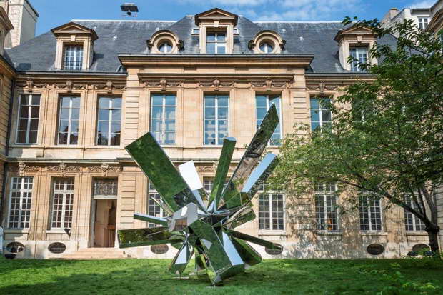 Attractive, reflective, colossal, sculptural and monumental, RockGrowth was designed by world- renowned artist and designer Arik Levy, in close collaboration with TF. Located in the region of Lyon (FR), TF works with stainless steel tubes and, since 2007, has specialised in the savoir-faire and crafts that use metal as a source of innovation including urban furniture and custom made creations for private and institutional clients, art and design. Bespoke projects and the eternal quest for uniqueness and perpetual design are the driving forces behind this imposing sculpture – RockGrowth – measuring 4m in height and embodying an artistic and technical achievement completed by a team of manufacturers in less than 6 weeks who strived to respect each stage of the semi-artisan process. Alongside Arik Levy’s studio, TF has been there for each vital production stage from cutting, shaping and finishing the polished mirror stainless steel forms, to the installation of this great sculpture in the Enclos des Bernardins gardens, located in the district of Boulevard Saint-Germain, designed by Chahan Minassian who has been commissioned by AD Interieurs on the theme of Metamorphosis.